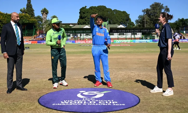 অনূর্ধ্ব-১৯ বিশ্বকাপে ভারত-পাকিস্তান ম্যাচে টসের সময় চলতি ধারার কোনও পরিবর্তন দেখা গেছে। রবিবার (১ ফেব্রুয়ারি) জিম্বাবোয়ের কুইন্স স্পোর্টস ক্লাবে সুপার সিক্স পর্বের শেষ ম্যাচে দুই দলের অধিনায়ক সচেতনভাবে চিরাচরিত করমর্দন এড়িয়ে টসের আনুষ্ঠানিকতা সম্পন্ন করেছেন। ভারতের অধিনায়ক আয়ুষ মাত্রে এবং পাকিস্তানের ক্যাপ্টেন ফারহান ইউসুফ কোনও হাত মেলানো ছাড়াই টস করেছেন। এই ঘটনা ম্যাচ শুরুর আগেই ক্রিকেট মহলে আলোচনার কেন্দ্রবিন্দুতে চলে আসে।