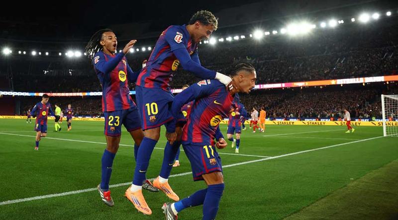 কাম্প নউয়ে মঙ্গলবার রাতে লা লিগার ম্যাচটি ৩-১ গোলে জিতেছে শিরোপাধারীরা। প্রথমার্ধে আলেক্স বায়েনার গোলে পিছিয়ে পড়ার পর দারুণ নৈপুণ্যে সমতা টানেন রাফিনিয়া। দ্বিতীয়ার্ধে দলকে এগিয়ে নেন দানি ওলমো। আর একেবারে শেষ মিনিটে জয় নিশ্চিত করেন ফেররান তরেস।