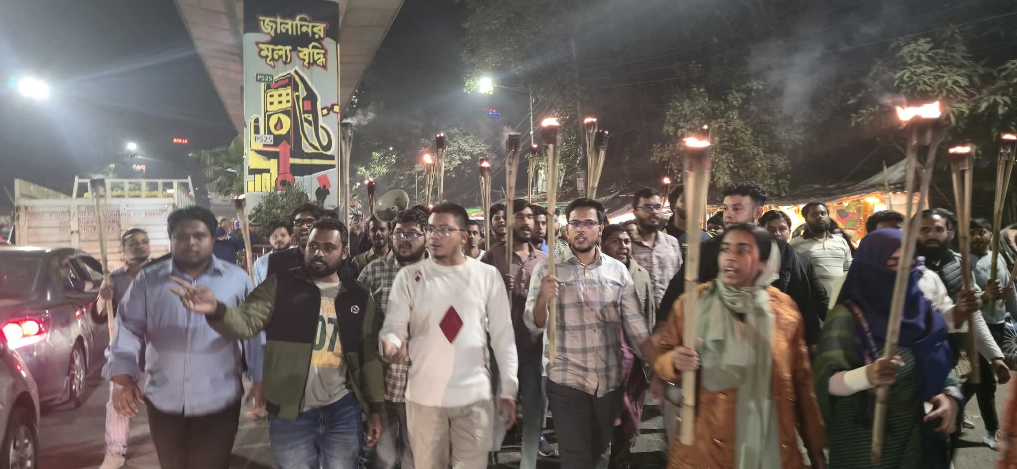 বিএসএফ কর্তৃক দুই বাংলাদেশিকে বেধড়ক পিটিয়ে হ-ত্যা-র প্রতিবাদে জাতীয় যুবশক্তির মশাল মিছিল।