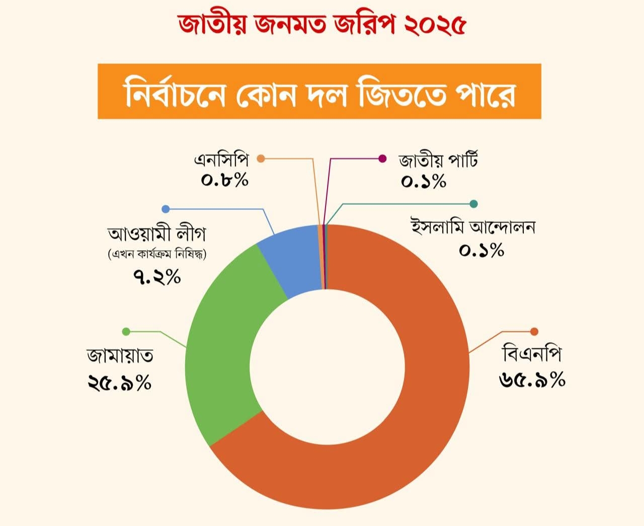 বিএনপি নির্বাচনে বেশি আসন জিতবে, মত ৬৬% মানুষের