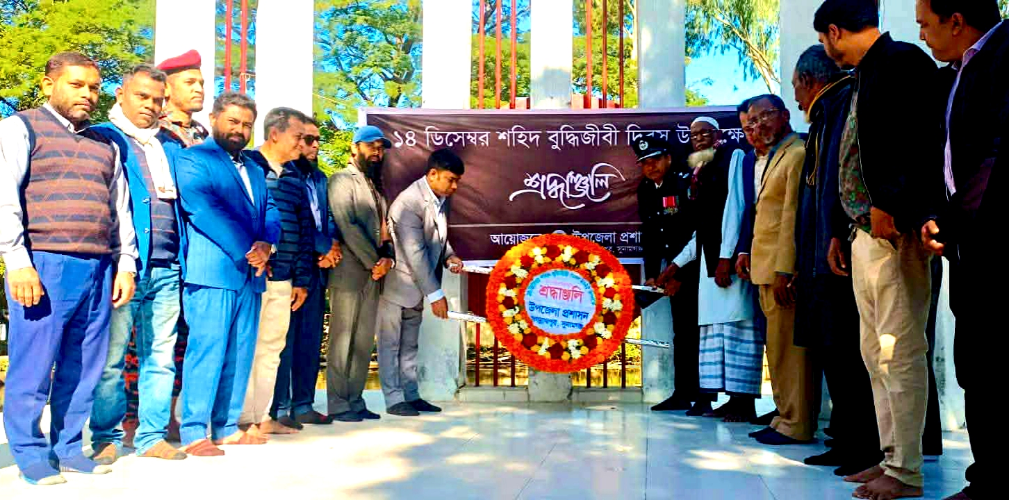 সুনামগঞ্জের জগন্নাথপুর উপজেলা প্রশাসনের উদ্যোগে ১৪ ডিসেম্বর শহিদ বুদ্ধিজীবি দিবস পালন করা হয়েছে। দিবসটি উদযাপন উপলক্ষ্যে শ্রদ্ধাঞ্জলি অর্পন ও আলোচনাসভা অনুষ্ঠিত হয়েছে। ১৪ ডিসেম্বর রোববার সকালে প্রথমে যথাযোগ্য মর্যাদায় শ্রদ্ধাঞ্জলি অর্পন করা হয়। পরে উপজেলা পরিষদ সম্মেলন কক্ষে আলোচনাসভা অনুষ্ঠিত হয়। জগন্নাথপুর উপজেলা নির্বাহী কর্মকর্তা মো.বরকত উল্লাহ এর সভাপতিত্বে অনুষ্ঠিত সভায় বক্তব্য রাখেন, উপজেলা সহকারী কমিশনার (ভূমি) মো.মহসীন উদ্দিন, জগন্নাথপুর থানার অফিসার ইনচার্জ (ওসি) মো.শফিকুল ইসলাম, উপজেলা প্রাণিসম্পদ কর্মকর্তা ডা.খালেদ সাইফুল্লাহ, উপজেলা কৃষি কর্মকর্তা কাওছার আহমদ, উপজেলা একাডেমিক সুপারভাইজার অরূপ কুমার রায়, বীরমুক্তিযোদ্ধা ইলিয়াছ আলী প্রমূখ। এতে বিভিন্ন শ্রেণি-পেশার নেতৃবৃন্দ বক্তব্য রাখেন ও অংশ গ্রহণ করেন