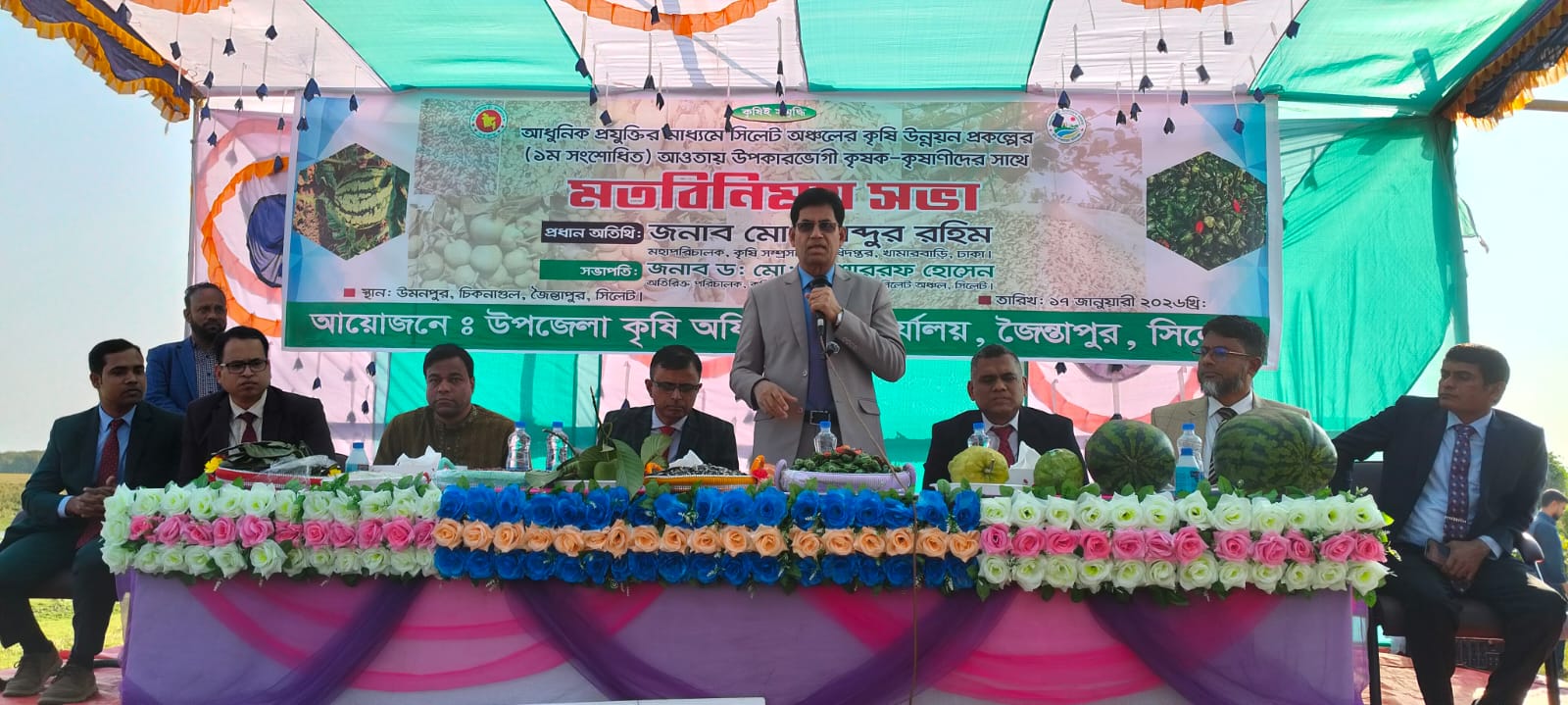 সভায় সভাপতিত্ব করেন কৃষি সম্প্রসারণ অধিদপ্তরের মহাপরিচালক। বিশেষ অতিথি হিসেবে উপস্থিত ছিলেন কৃষি সম্প্রসারণ অধিদপ্তরের সিলেট অঞ্চলের অতিরিক্ত পরিচালক ডঃ মোঃ মোশাররফ হোসেন। অনুষ্ঠানটি সঞ্চালনা করেন হুমায়ুন দিলদার, উপজেলা কৃষি অফিসার, জৈন্তাপুর।