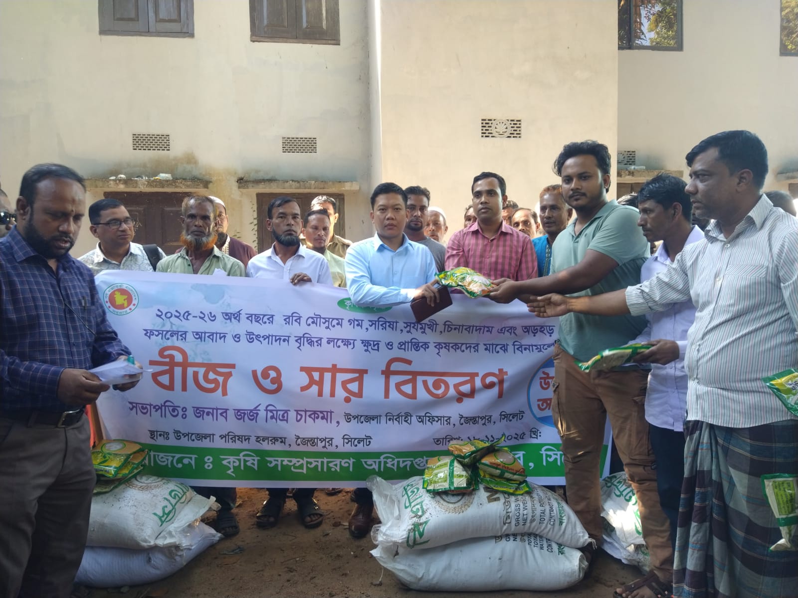 জৈন্তাপুরে ক্ষুদ্র ও প্রান্তিক কৃষকদের মাঝে বিনামূল্যে সরিষার বীজ ও সার বিতরণ কর্মসূচির শুভ উদ্বোধন