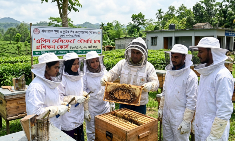 সিলেটে নতুন উদ্যোক্তা তৈরি এবং বেকার যুবক যুবতীদের স্বাবলম্বী করার লক্ষ্যে বাংলাদেশ ক্ষুদ্র ও কুটির শিল্প করপোরেশন (বিসিক) এর উদ্যোগে পাঁচ দিনব্যাপী মৌমাছি পালন প্রশিক্ষণ কর্মসূচি শুরু হয়েছে। ২০২৫-২০২৬ অর্থ বছরের ১ম কোর্সের আওতায় ‘এপিস মেলিফেরা’ জাতের মৌমাছি চাষের ওপর এই বিশেষ প্রশিক্ষণের আয়োজন করা হয়।