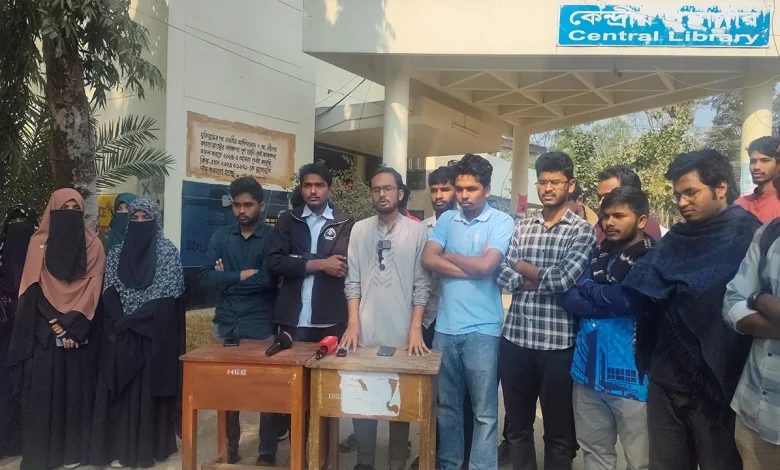শাহজালাল বিশ্ববিদ্যালয়ে শাকসু নির্বাচন স্থগিতের প্রতিবাদে ক্লাস ও পরীক্ষা বর্জন শিক্ষার্থীদের