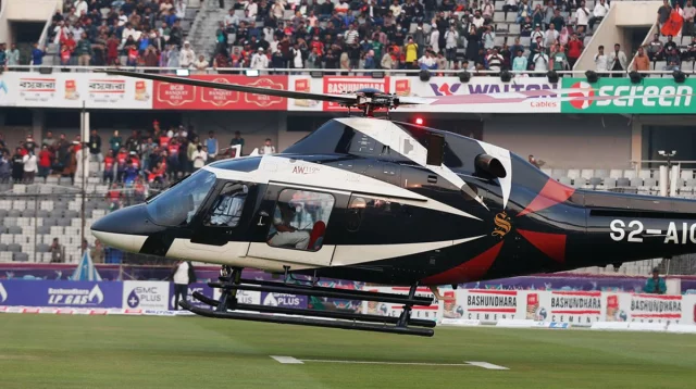 ফাইনালের আগে হেলিকপ্টারে করে মাঠে এলো বিপিএলের ট্রফি