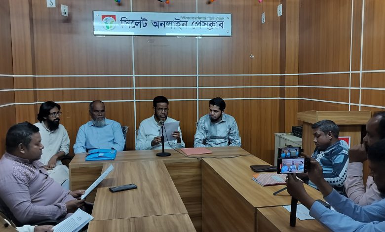 সোমবার বিকালে সিলেট অনলাইন প্রেসক্লাবের ড: রাগীব আলী মিলনায়তনে অনুষ্ঠিত সংবাদ সম্মেলনে তিনি এসব অভিযোগ করেন।