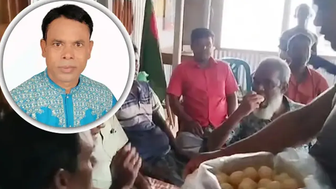 কিশোরগঞ্জের ইটনায় শৈলেন চন্দ্র দাস নামে এক আওয়ামী লীগ নেতা গ্রেপ্তারের পর মিষ্টি বিতরণ করেছেন স্থানীয়রা।