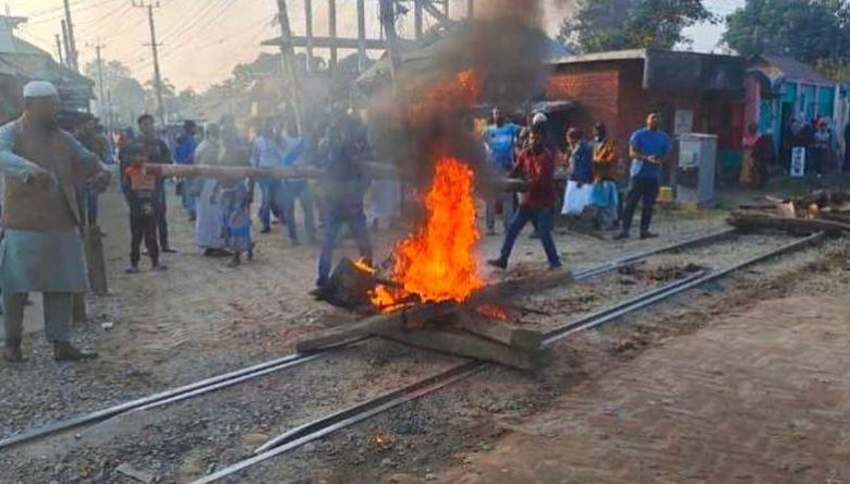 ঢাকা-ময়মনসিংহ রেললাইনে বিএনপি নেতাকর্মীদের আগুন, ট্রেন চলাচল বন্ধ