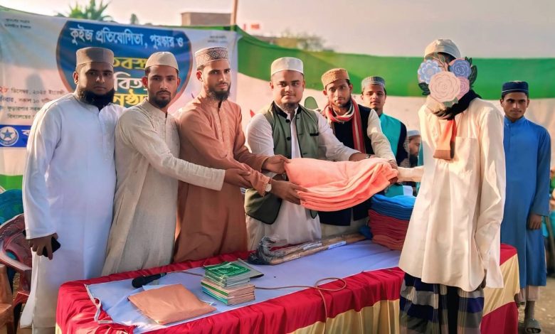 সিলেটের কোম্পানীগঞ্জ উপজেলার ফুড়ারপার আঞ্চলিক শাখা তালামীযে ইসলামিয়ার উদ্যোগে শীতার্ত মানুষের মাঝে শীতবস্ত্র বিতরণ করা হয়েছে। বাংলাদেশ আনজুমানে তালামীযে ইসলামিয়ার ‘শীতবস্ত্র বিতরণ কর্মসূচি-২০২৫’ এর অংশ হিসেবে এই মহতী উদ্যোগ গ্রহণ করা হয়। রবিবার (২৮ ডিসেম্বর) বিকাল ৫টায় ফুরারপাড় এলাকায় আয়োজিত অনুষ্ঠানে প্রধান অতিথি হিসেবে উপস্থিত ছিলেন কোম্পানীগঞ্জ উপজেলা তালামীযে ইসলামিয়ার সভাপতি শরীফ আহমদ মাহদী। প্রধান অতিথির বক্তব্যে তিনি বলেন, “শীতের তীব্রতায় অসহায় ও দরিদ্র মানুষ যখন মানবেতর জীবনযাপন করছে, তখন তাদের পাশে দাঁড়ানো আমাদের ইমানি ও নৈতিক দায়িত্ব। মানবতার সেবায় তালামীযে ইসলামিয়া সবসময় রাজপথে ও আর্তমানবতার পাশে ছিল এবং আগামীতেও এই ধারা অব্যাহত থাকবে।” ফুড়ারপার আঞ্চলিক শাখার আয়োজনে অনুষ্ঠানে বিশেষ অতিথি ও অন্যান্যদের মধ্যে উপস্থিত ছিলেন উপজেলা তালামীযের সহ-সভাপতি মোঃ ইব্রাহিম আলী, সহ-সাধারণ সম্পাদক জাহাঙ্গীর আলম, উপজেলা নেতা মোঃ আতিক আহমদ, মোঃ আনসার উদ্দিন, মোঃ মিজান আহমদ ও পারভেজ আহমদ। এছাড়াও উপস্থিত ছিলেন দক্ষিণ রনিখাই ইউনিয়ন তালামীযের সাধারণ সম্পাদক লোকমান হেকিমসহ শাখার বিভিন্ন পর্যায়ের দায়িত্বশীল ও স্থানীয় গণ্যমান্য ব্যক্তিবর্গ। অনুষ্ঠান শেষে দেশ, জাতি ও মুসলিম উম্মাহর কল্যাণ কামনায় বিশেষ মোনাজাত করা হয়।